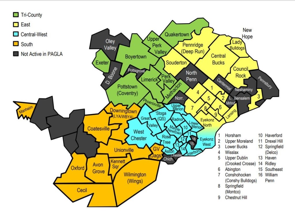 PAGLA is comprised of four regions: Tri-County, East, Central West and South.
